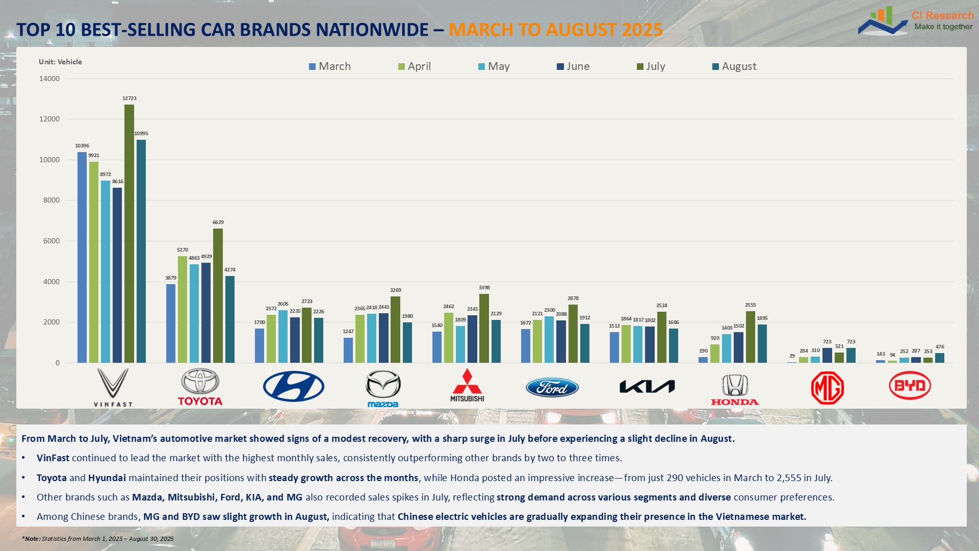 - VinFast leads with 64,006 units sold; VF 5 accounts for 31% – proving EVs are now mainstream.